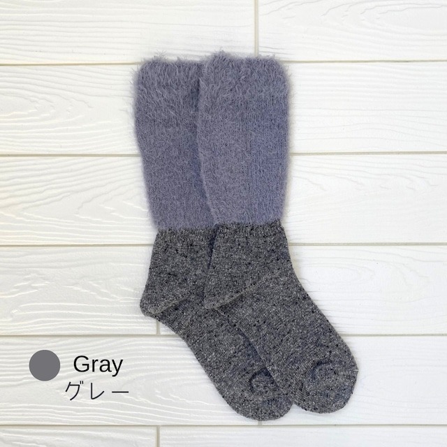 カラー展開はブラウン・ブラック・グレー・ベージュの4色です。靴下部分と足首のもこもこ部分では微妙に色味が異なるのがまたお洒落ですね。使い方次第で様々なアレンジができる冬用靴下、1,200円(送料無料)です!是非お試しください★