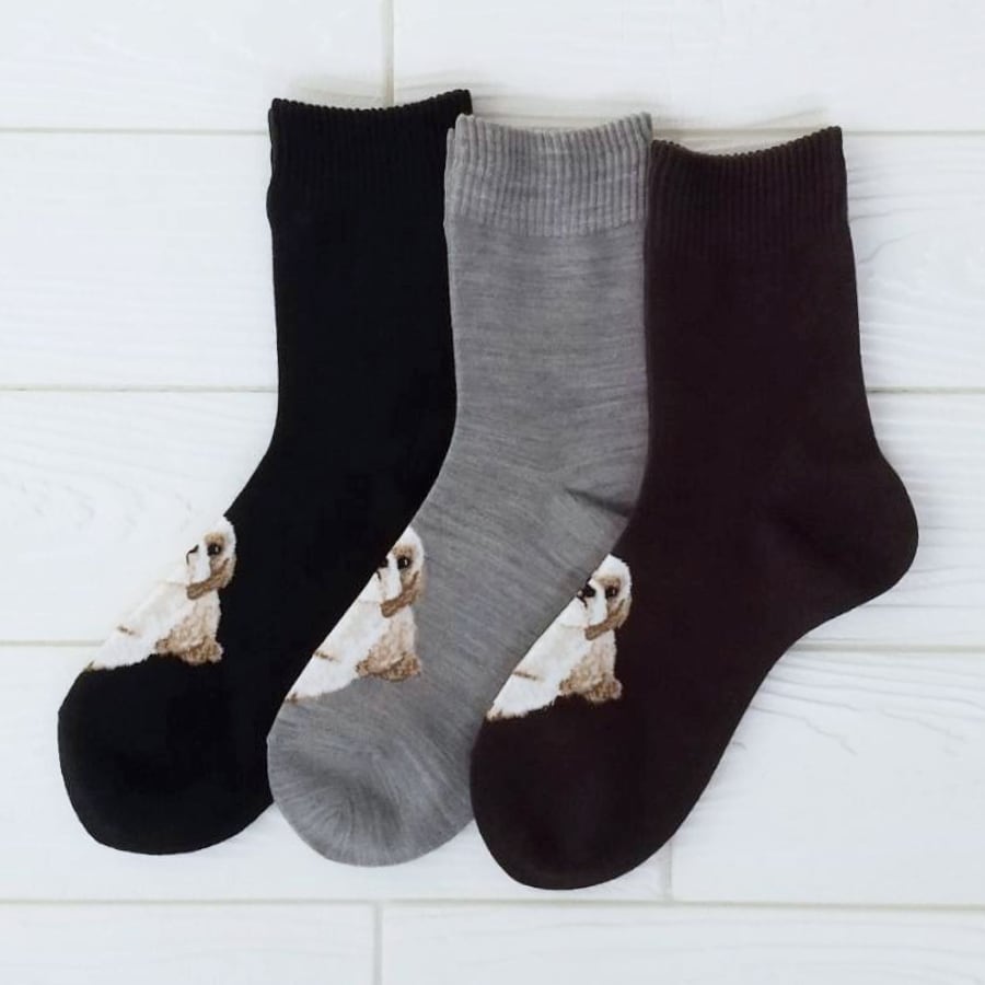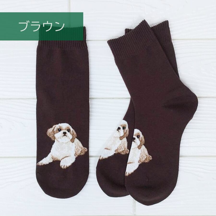 シーズー柄 レディース クルー丈ソックス 選べる3足セット 日本製
