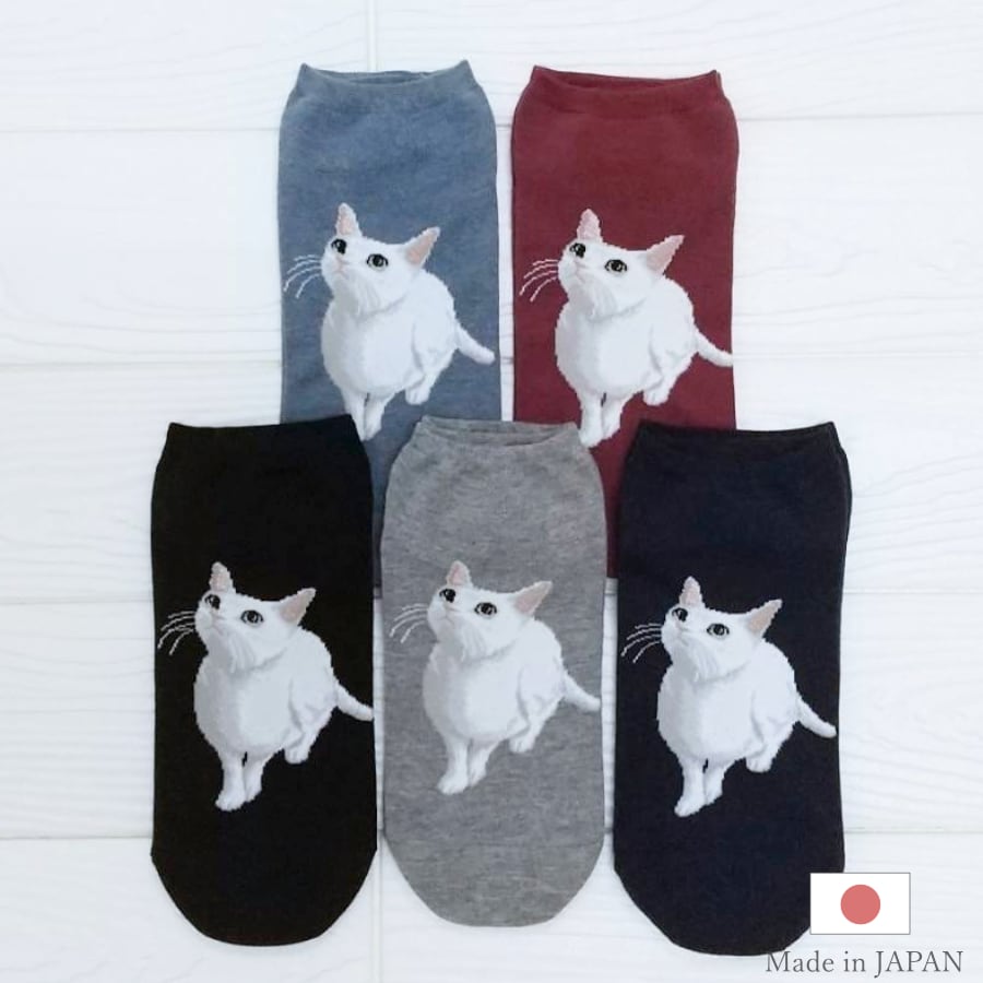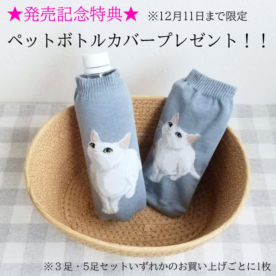 ★新柄発売記念★12月11までにご購入いただいた方全員に1セットに付きお一つ白猫柄ボトルカバープレゼント★白猫柄 レディース ショート丈ソックス 3足セット 日本製