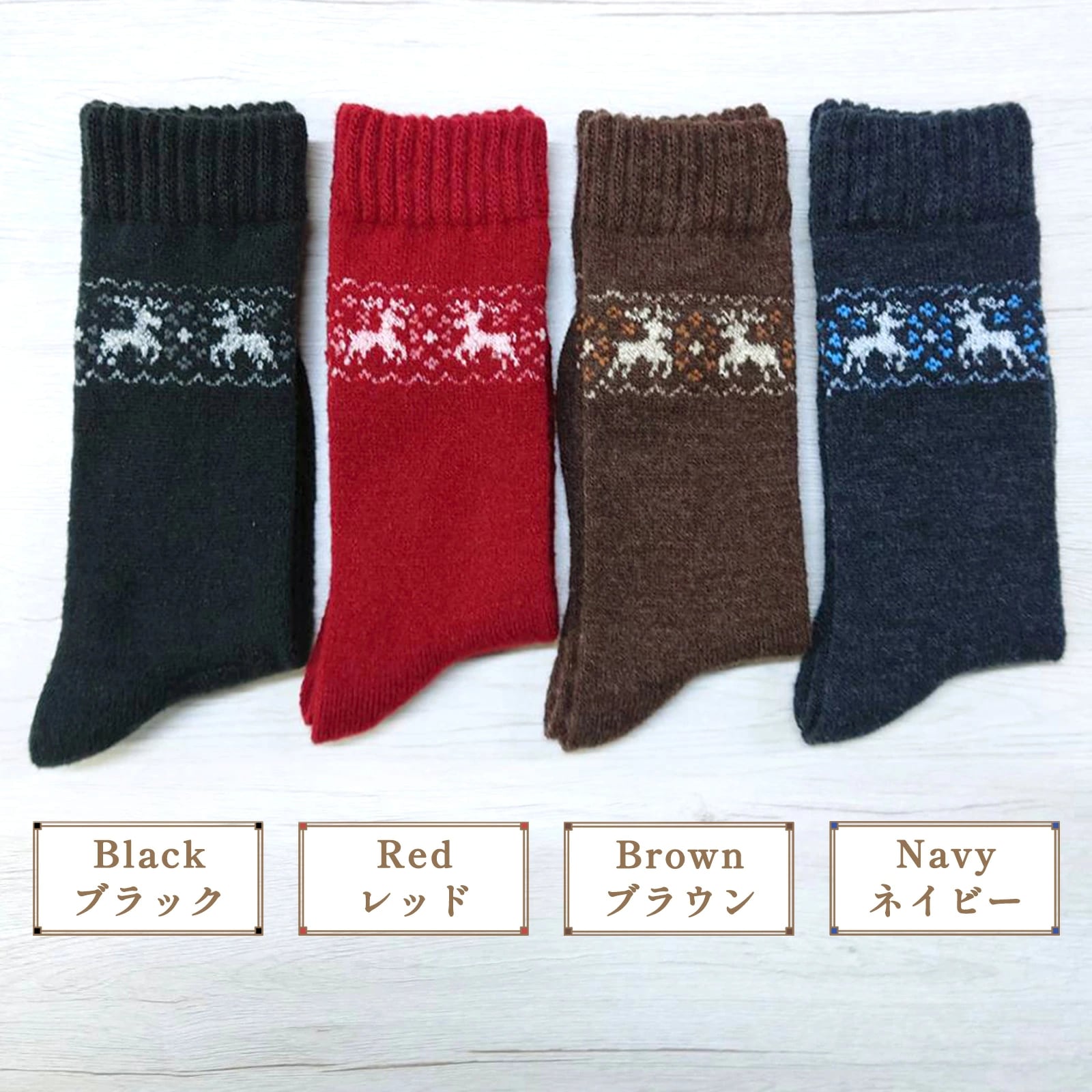 [3足セット1000円]レディースW口ゴムふんわりあったかソックス トナカイ クルー丈[カラー組合せ可能]