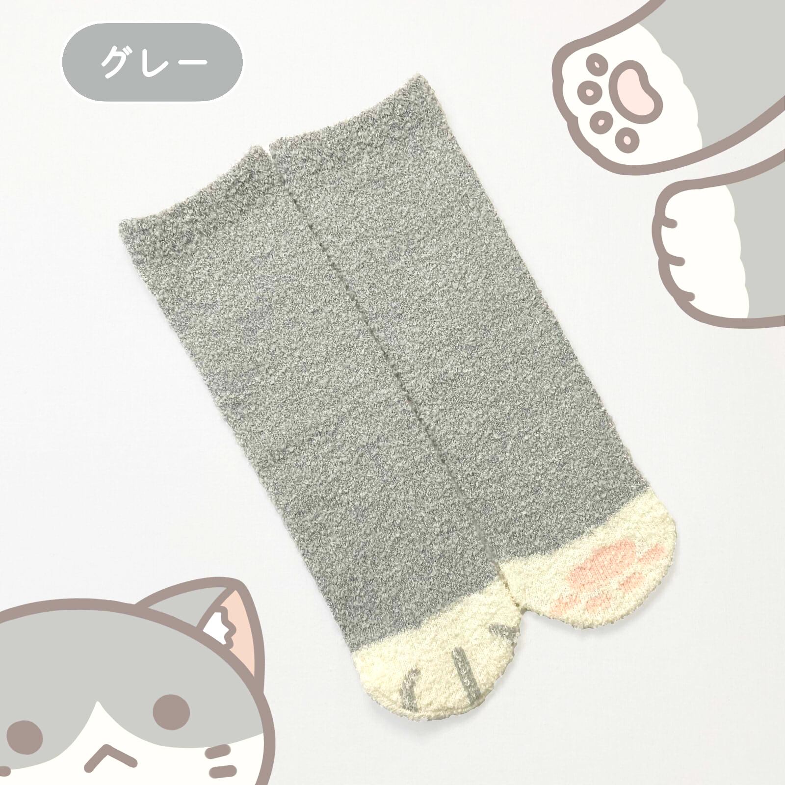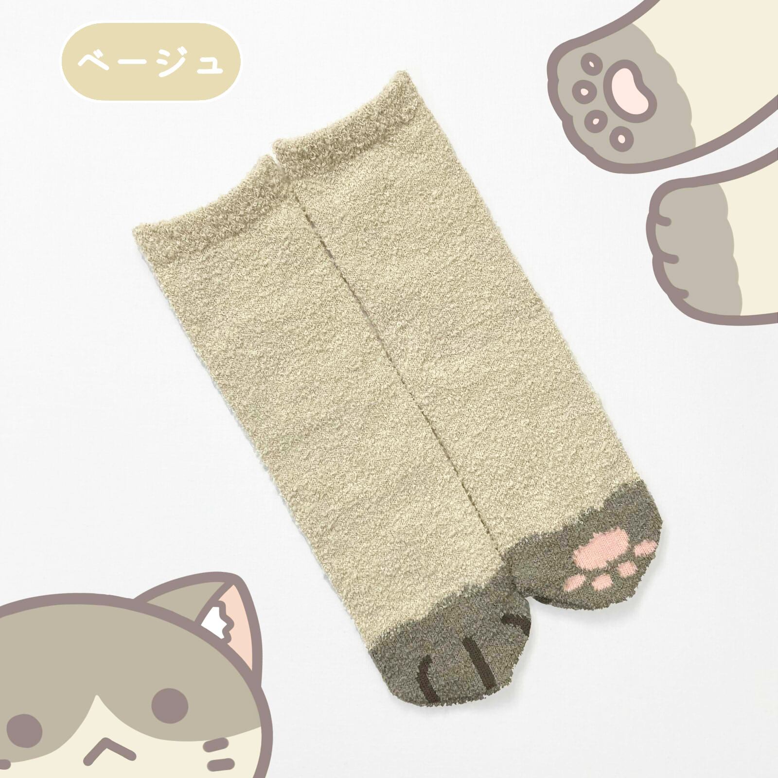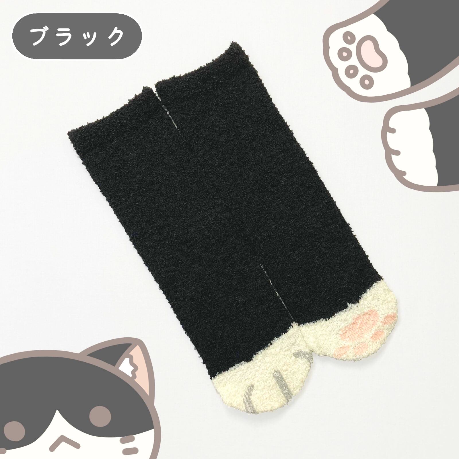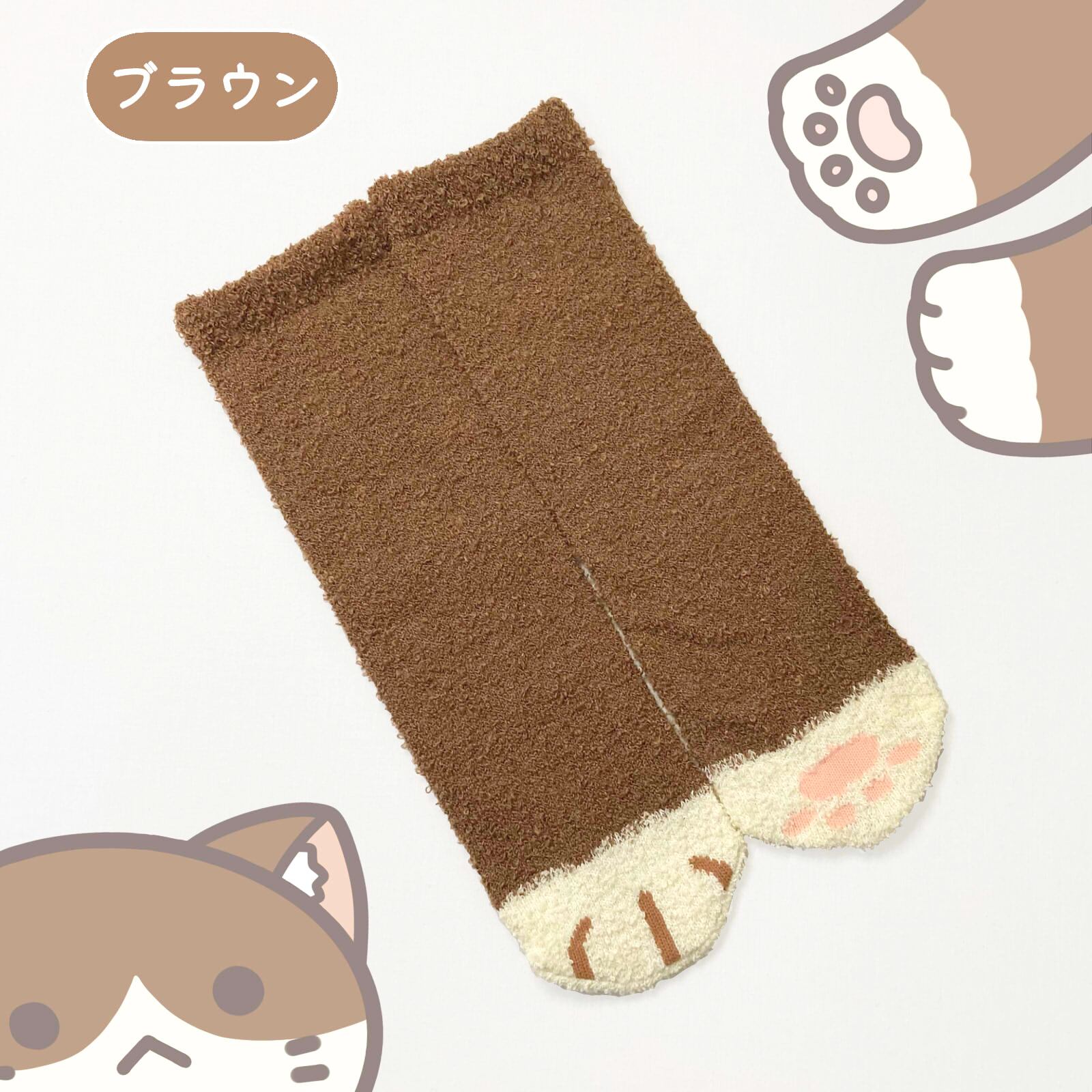 アニマルデザイン もこもこ靴下猫 ルームソックス 3足セット