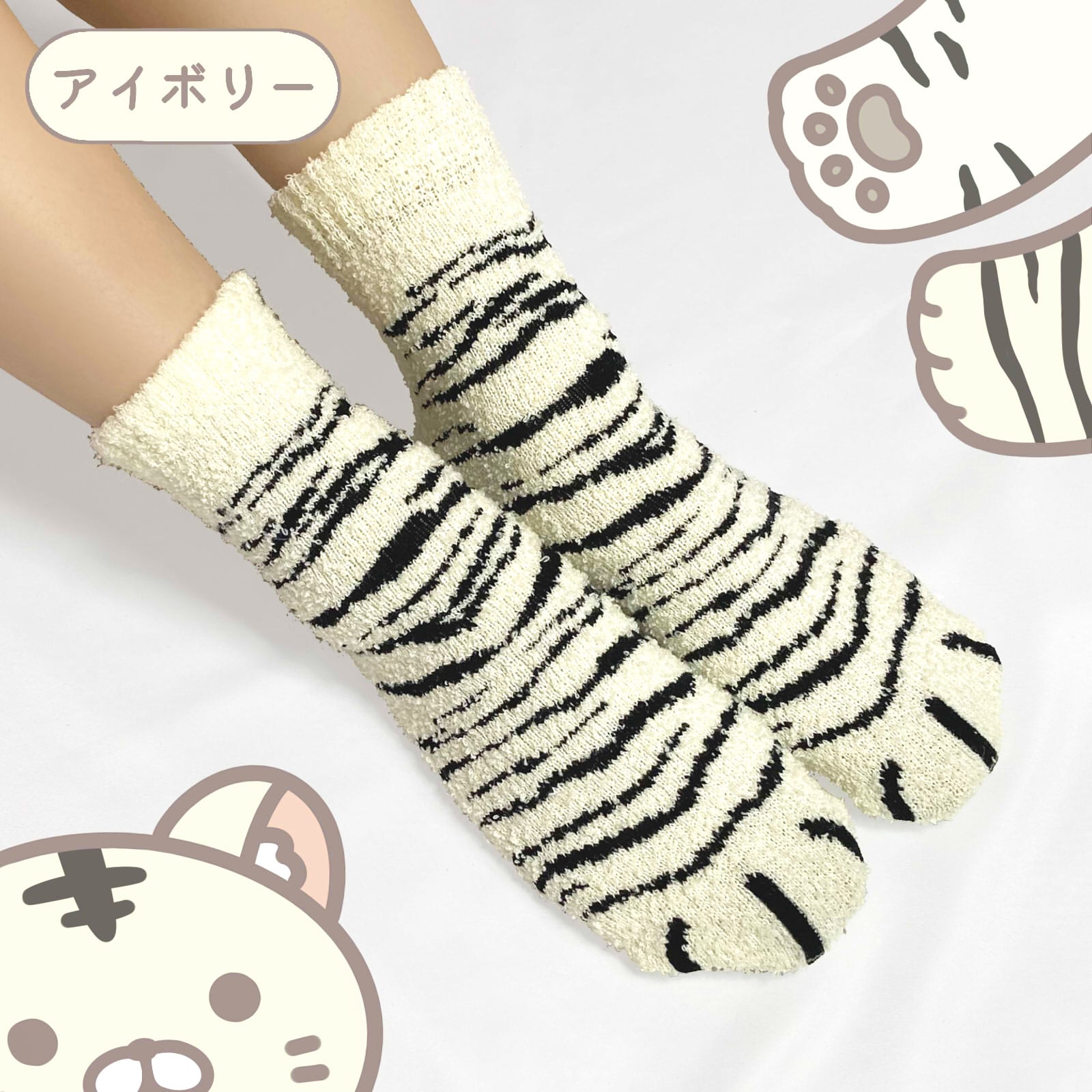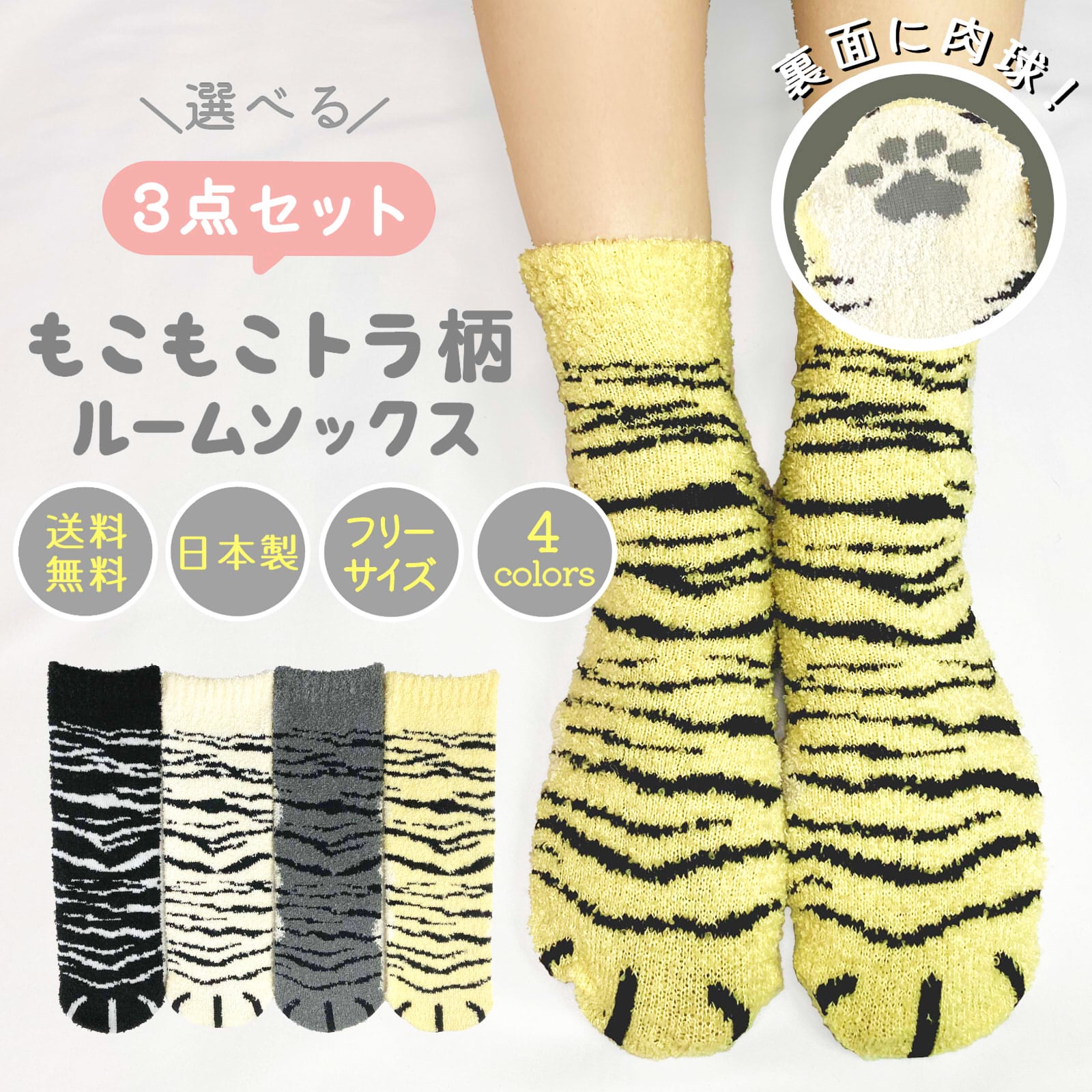 アニマルデザイン もこもこ靴下 トラ柄 ルームソックス 3足セット