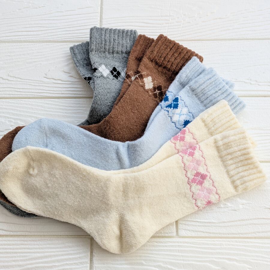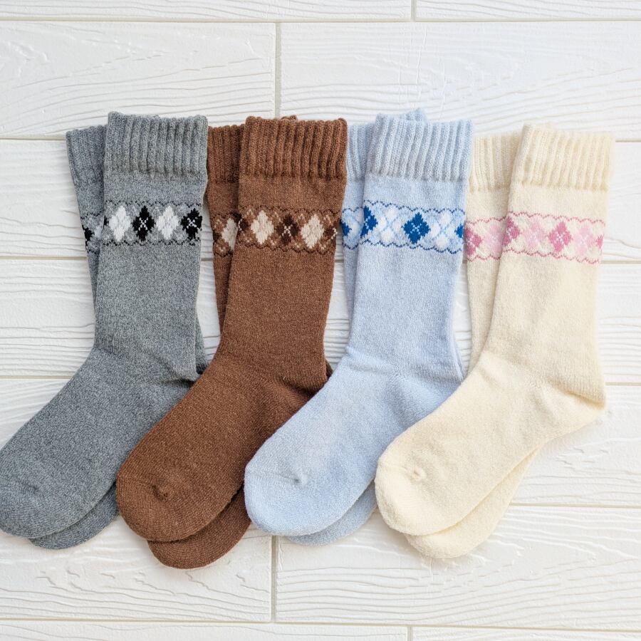 [3足セット1000円]レディースW口ゴムふんわりあったかソックス アーガイル クルー丈【52AW0056】