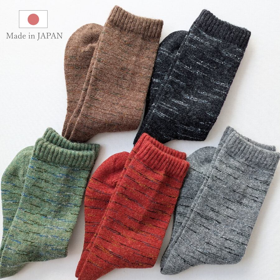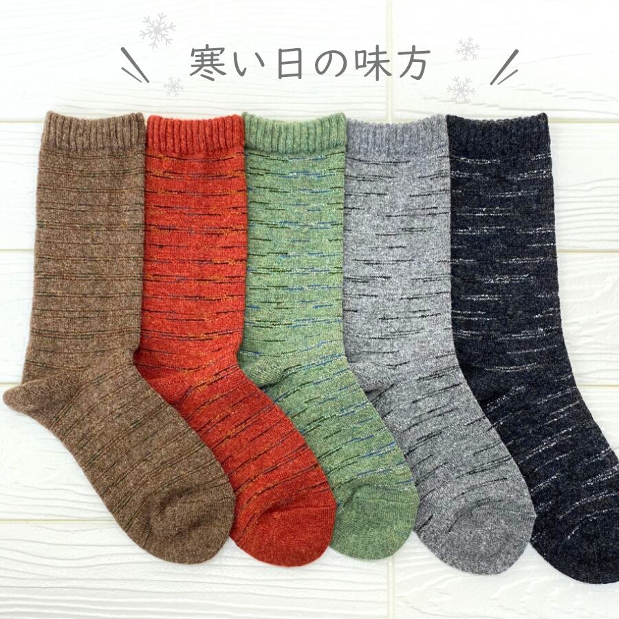 冬の寒い日にぴったりのあったかい毛混ランダムボーダーの靴下です。