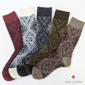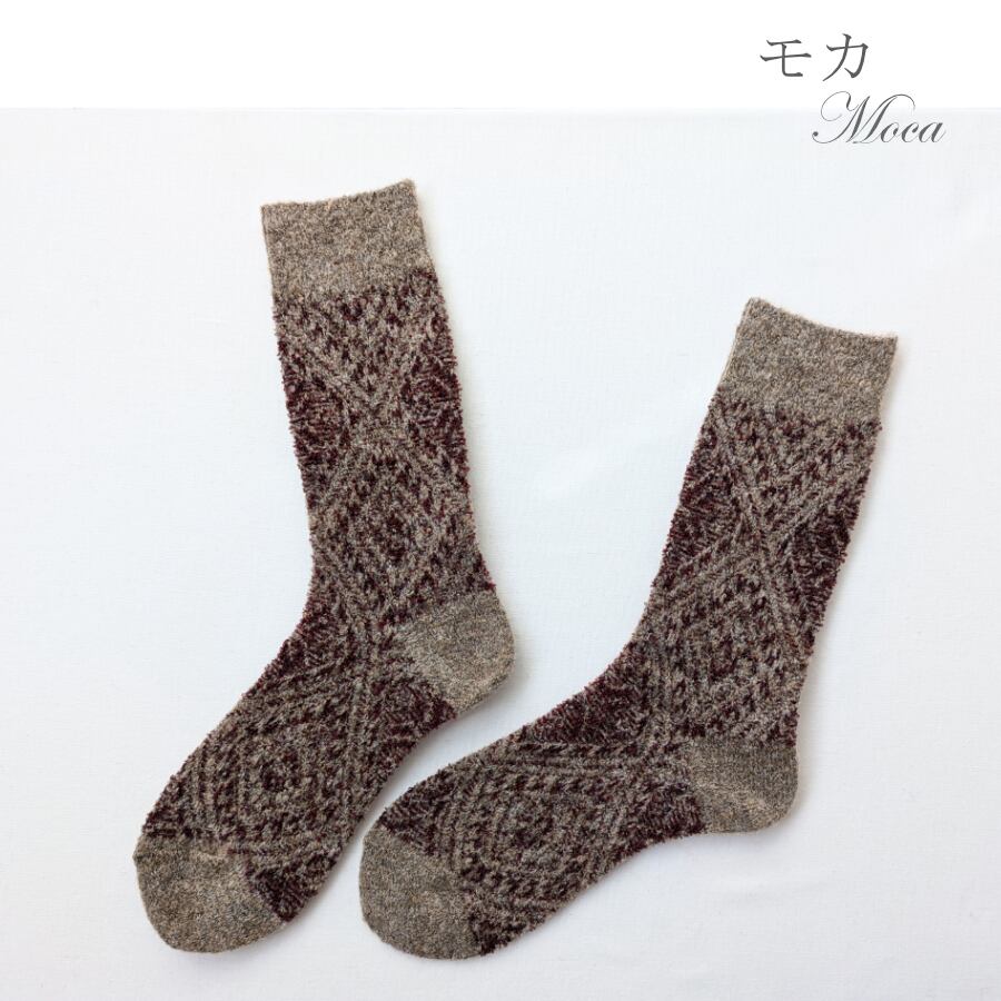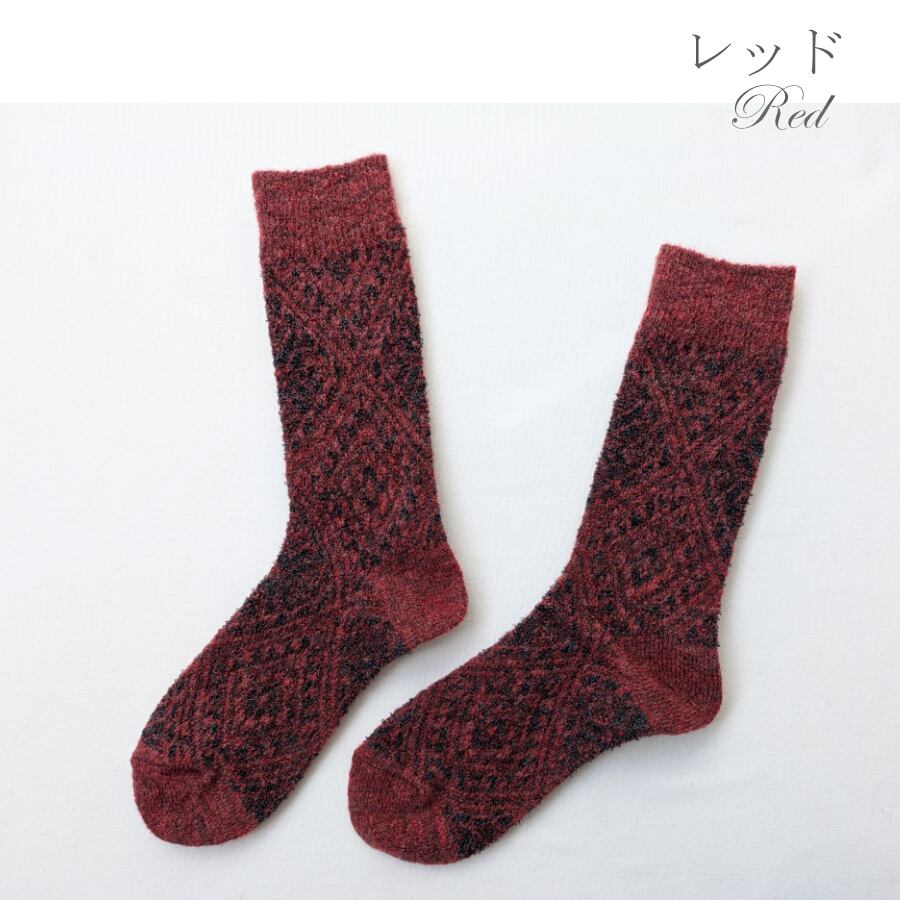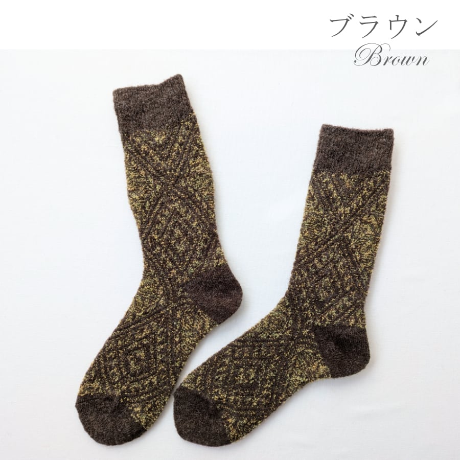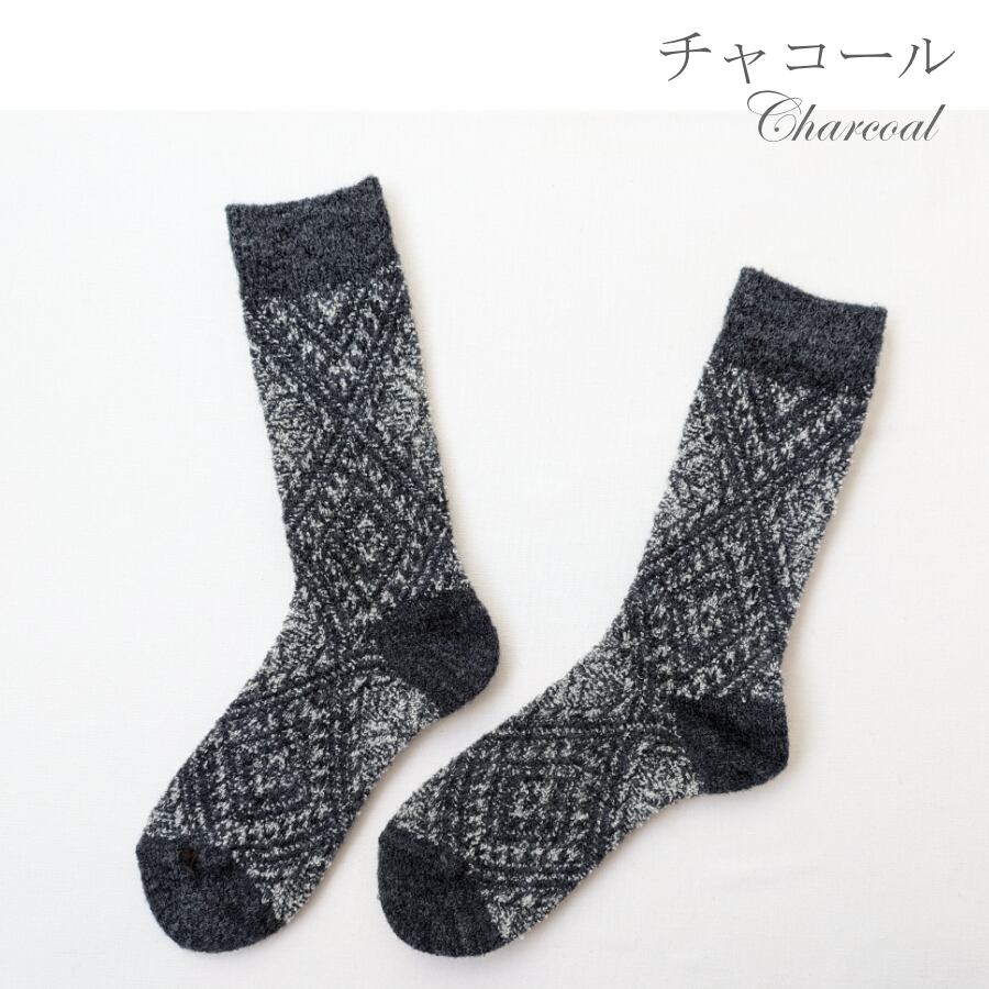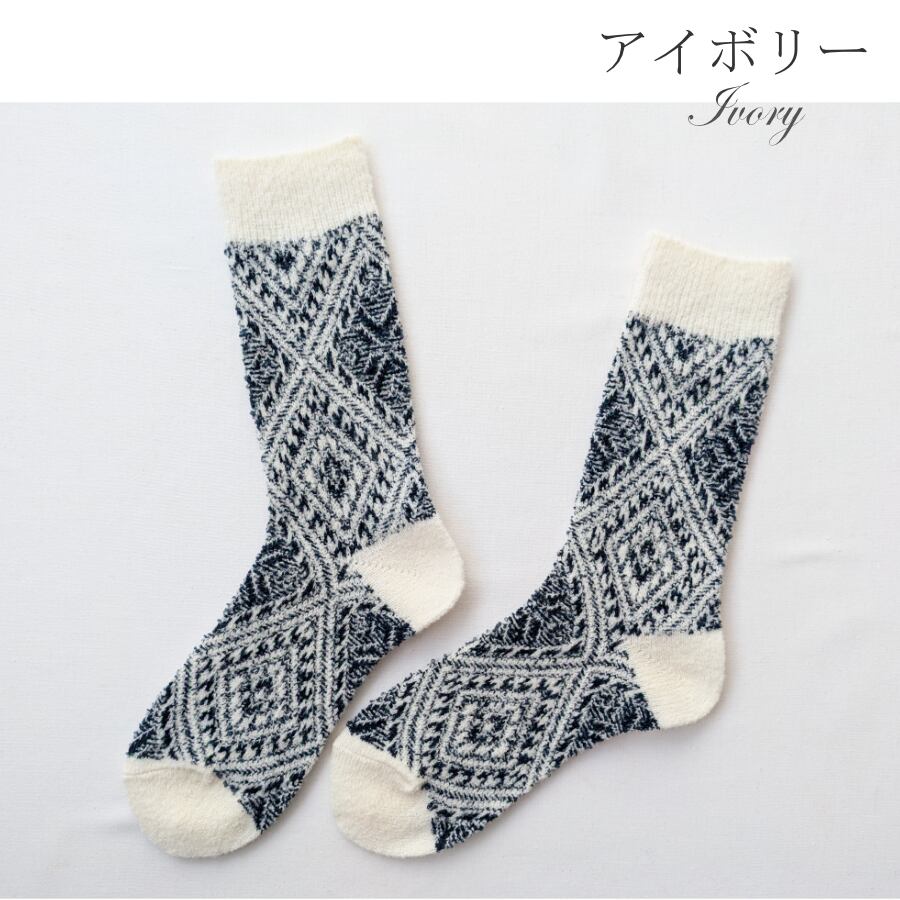 ウール高率混 ダイヤ&ドット柄靴下 レディース(IF90025)