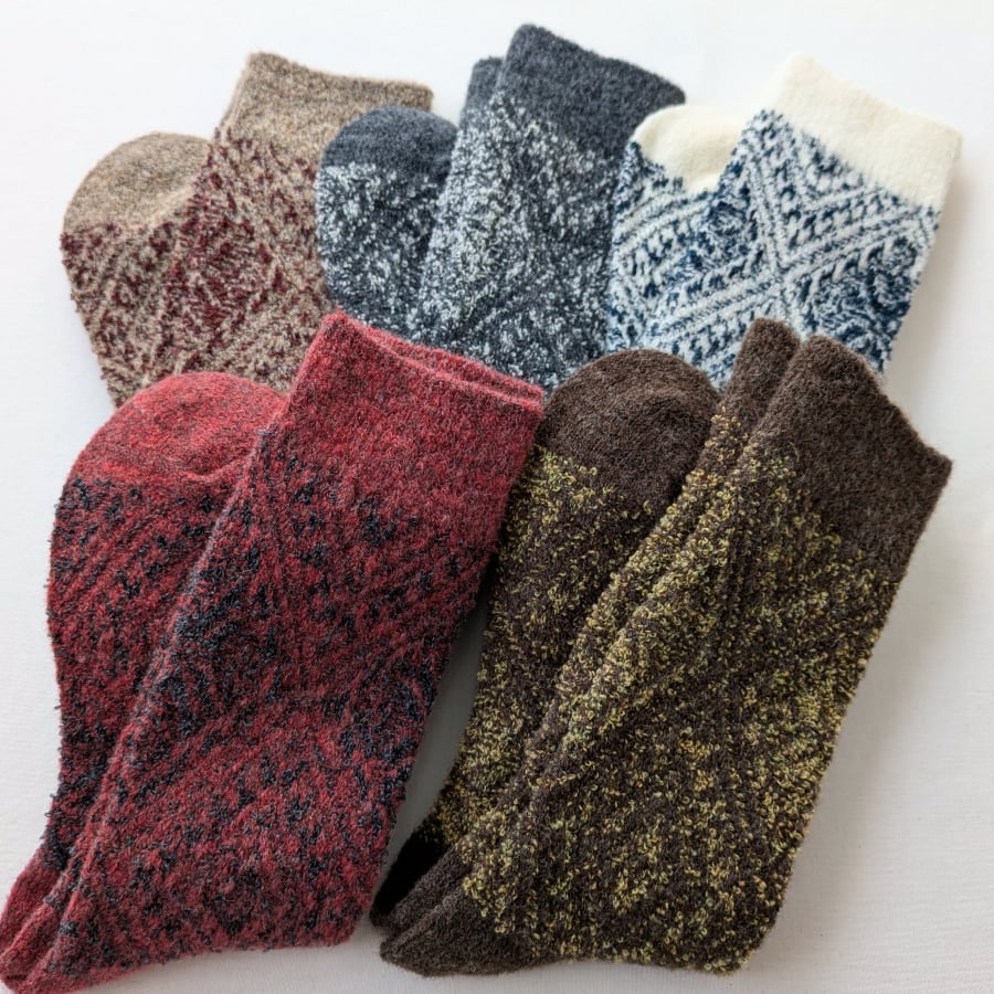 メイン素材にウールを使用した暖かいレディース靴下です。素材選びから縫製・加工まですべての工程を日本国内の工場で行っています。カラーバリエーションも豊富でコーディネートの幅が広がります。