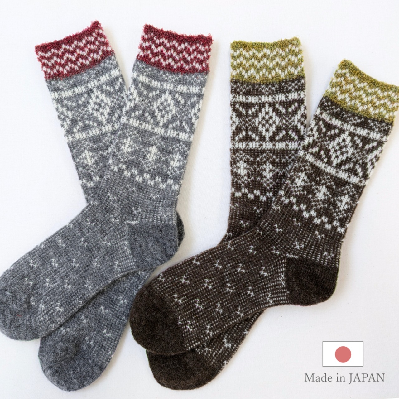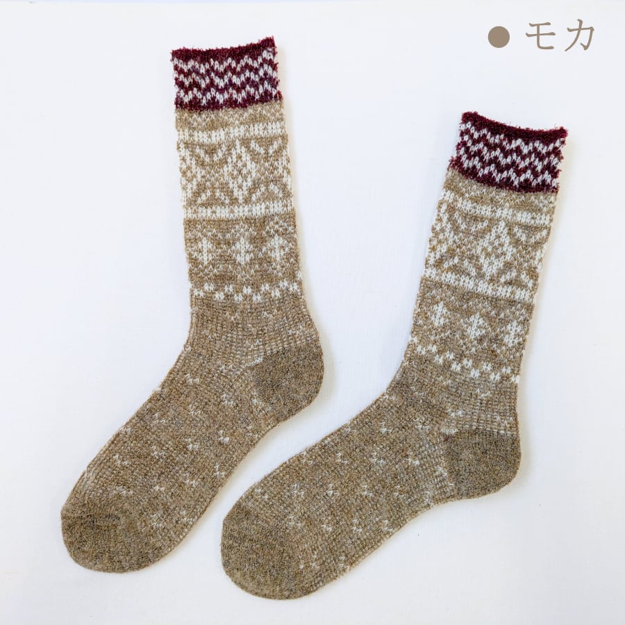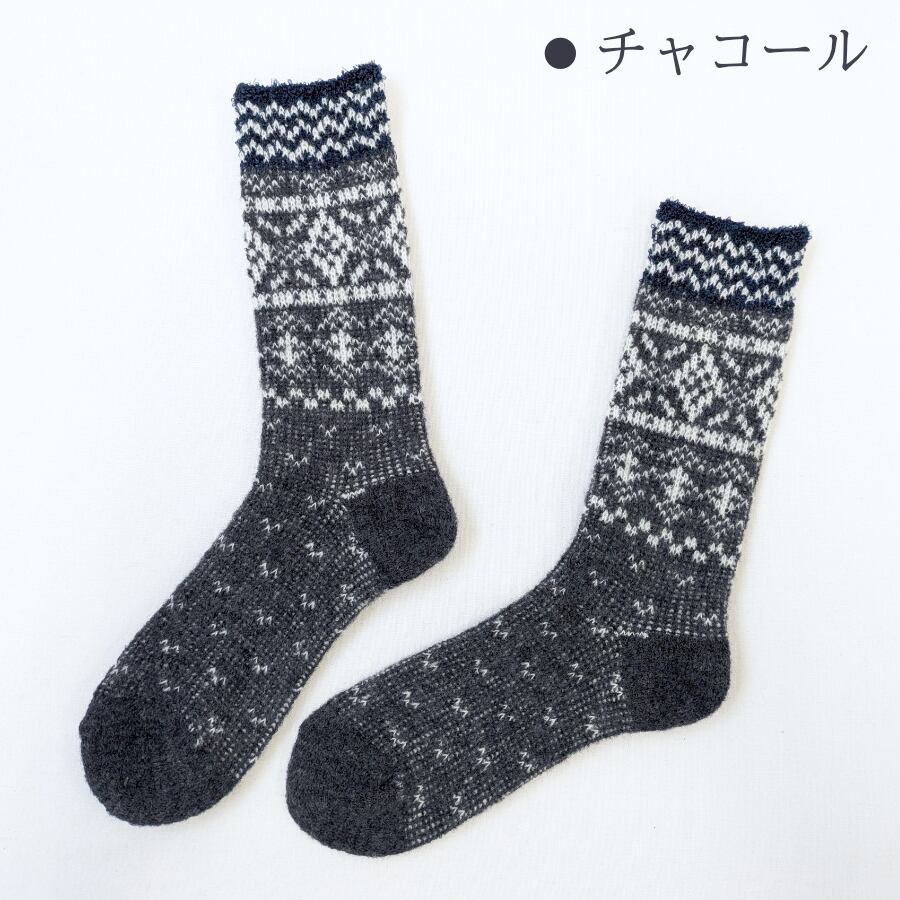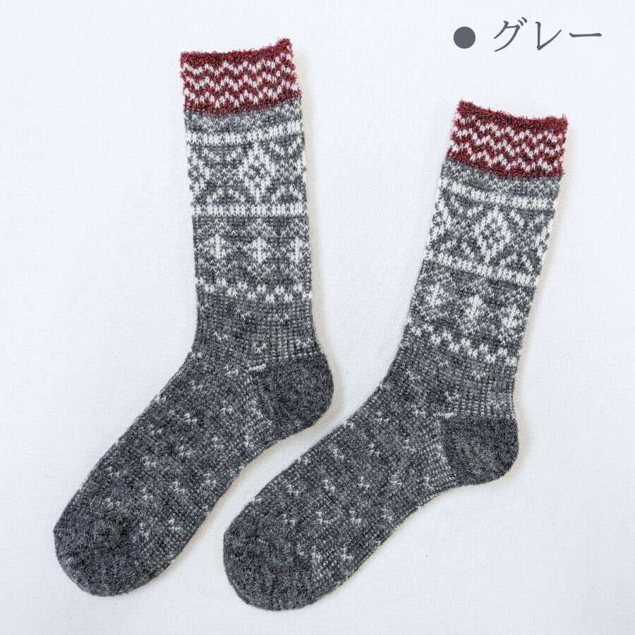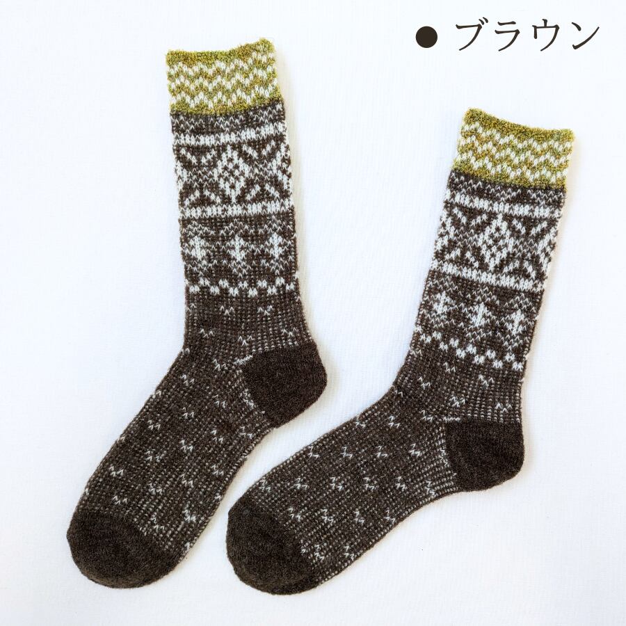 ウール高率混 幾何学 靴下 レディース(IF90026)